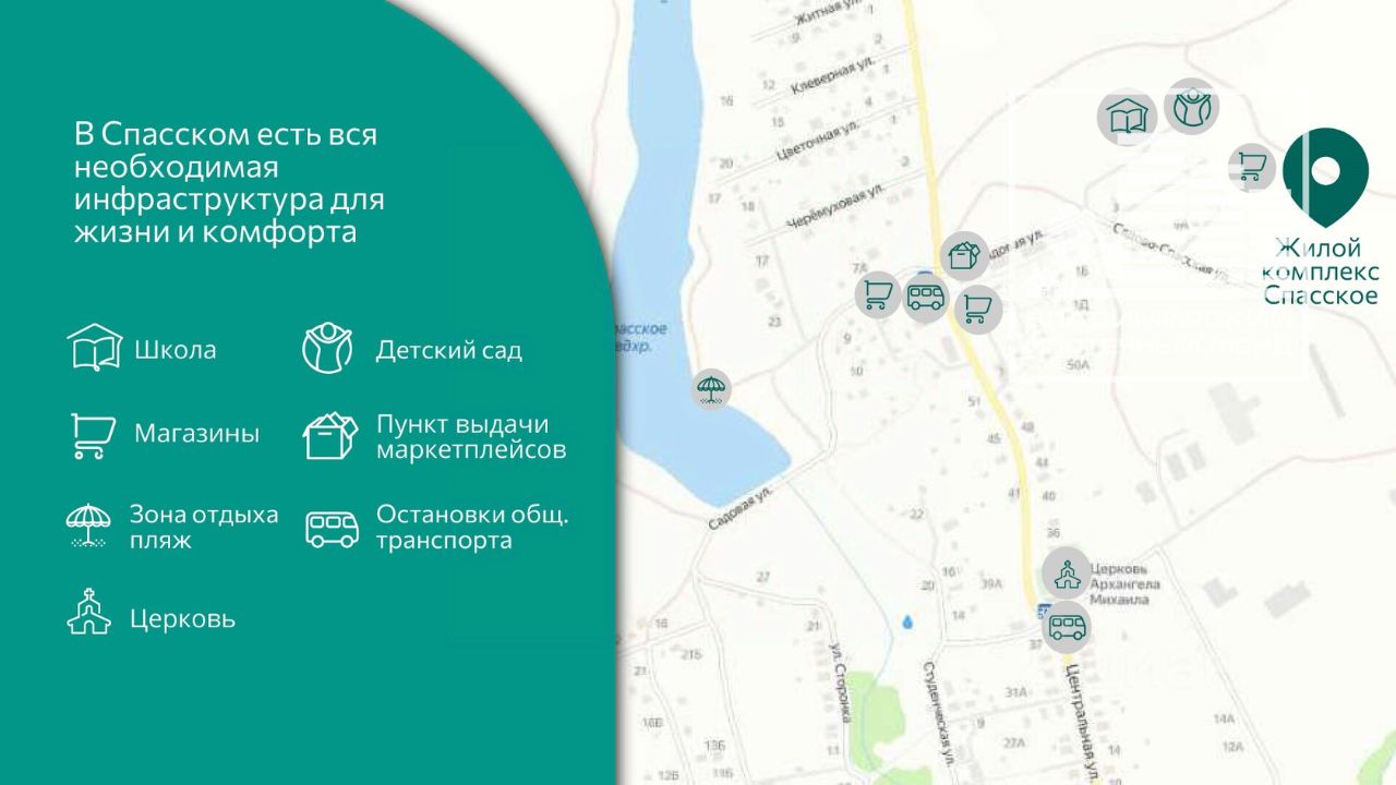 Одно из главных преимуществ - развитая инфраструктура. В Спасском есть все необходимое для развития детей и Вашего комфорта, и это - в шаговой доступности: + Магазины и пункты выдачи маркетплейсов + Остановки общественного транспорта - регулярные городские автобусные маршруты + Проектируемые детский сад и школа + Пляж и зоны отдыха + Церковь