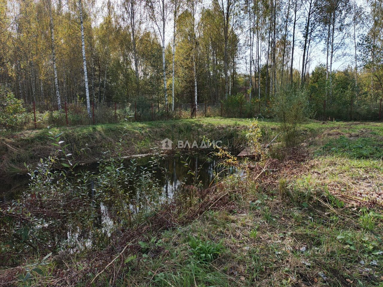 На участке вырыт небольшой пруд.