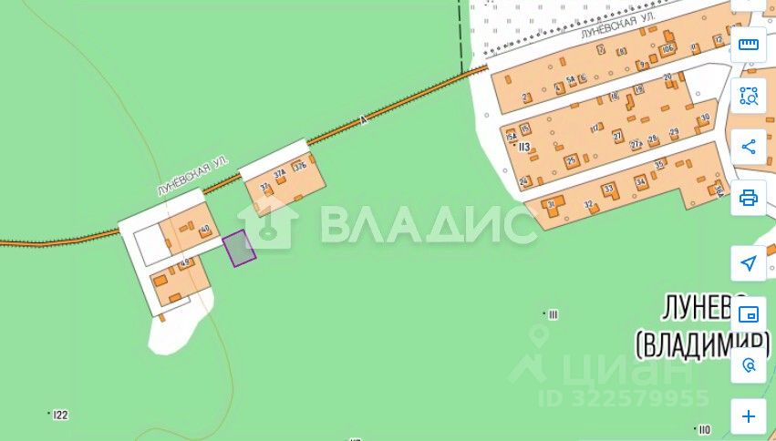 Участок правильной формы, 30 * 40 м, находится на второй линии от дороги.