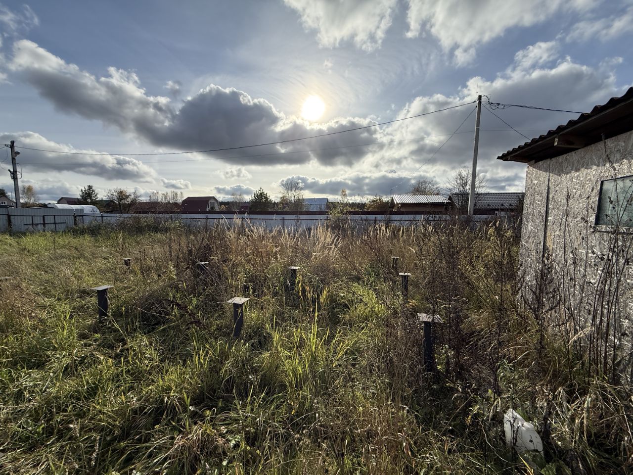 ОБ ОБЪЕКТЕ: Земельный участок 6 соток, ровный, прямоугольной формы, огорожен со всех сторон (с двух сторон забором из профнастила, с оставшихся двух сторон между соседями забором из сетки рабица). Установлены въездные ворота для автотранспорта и калитка. На участке расположен свайно-винтовой фундамент, размером 6 на 10 метров (можно расширить 8 м. на 10 м.), а так же хоз/блок (для хранения хозяйственного инвентаря, строительных материалов и. т.д.).