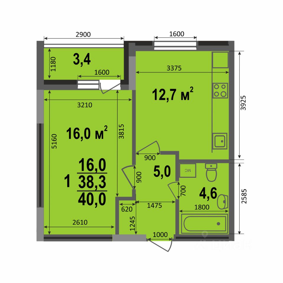 Общая площадь40 м2