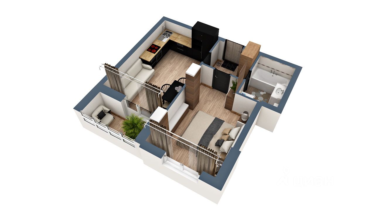 Квартира сдается с качественной черновой отделкой: штукатурка стен, выравнивающая стяжка пола, установка пластиковых окон с подоконниками и откосами, установка входной двери, без электрической разводки.