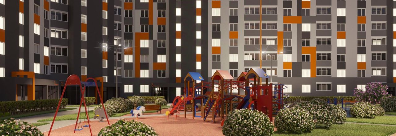 - двор без машин и уютными пешеходными, игровыми и спортивными зонами