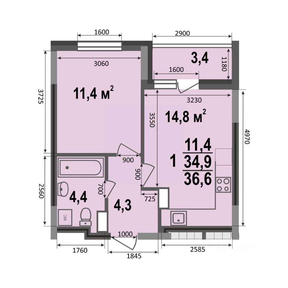 Общая площадь36,6 м2