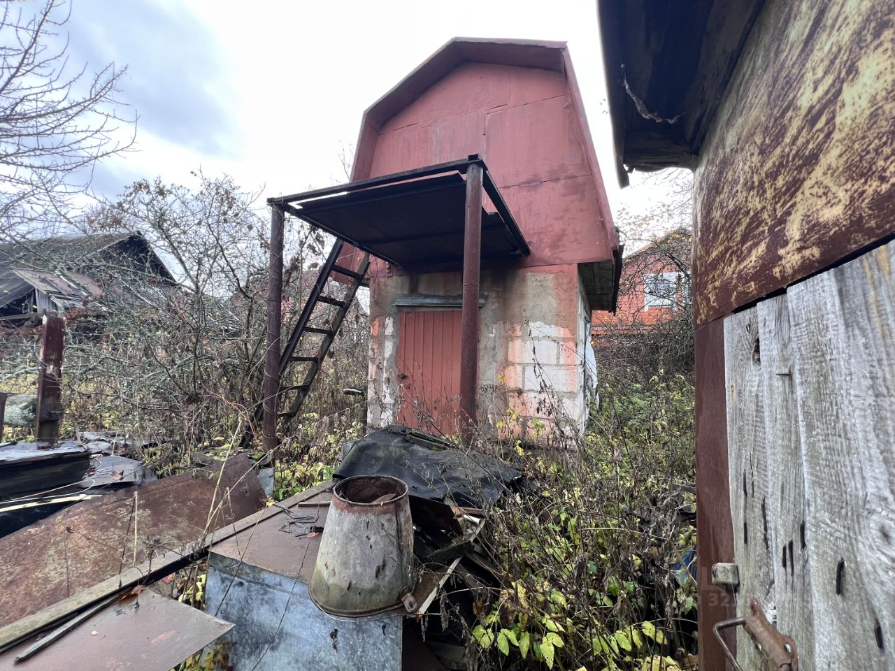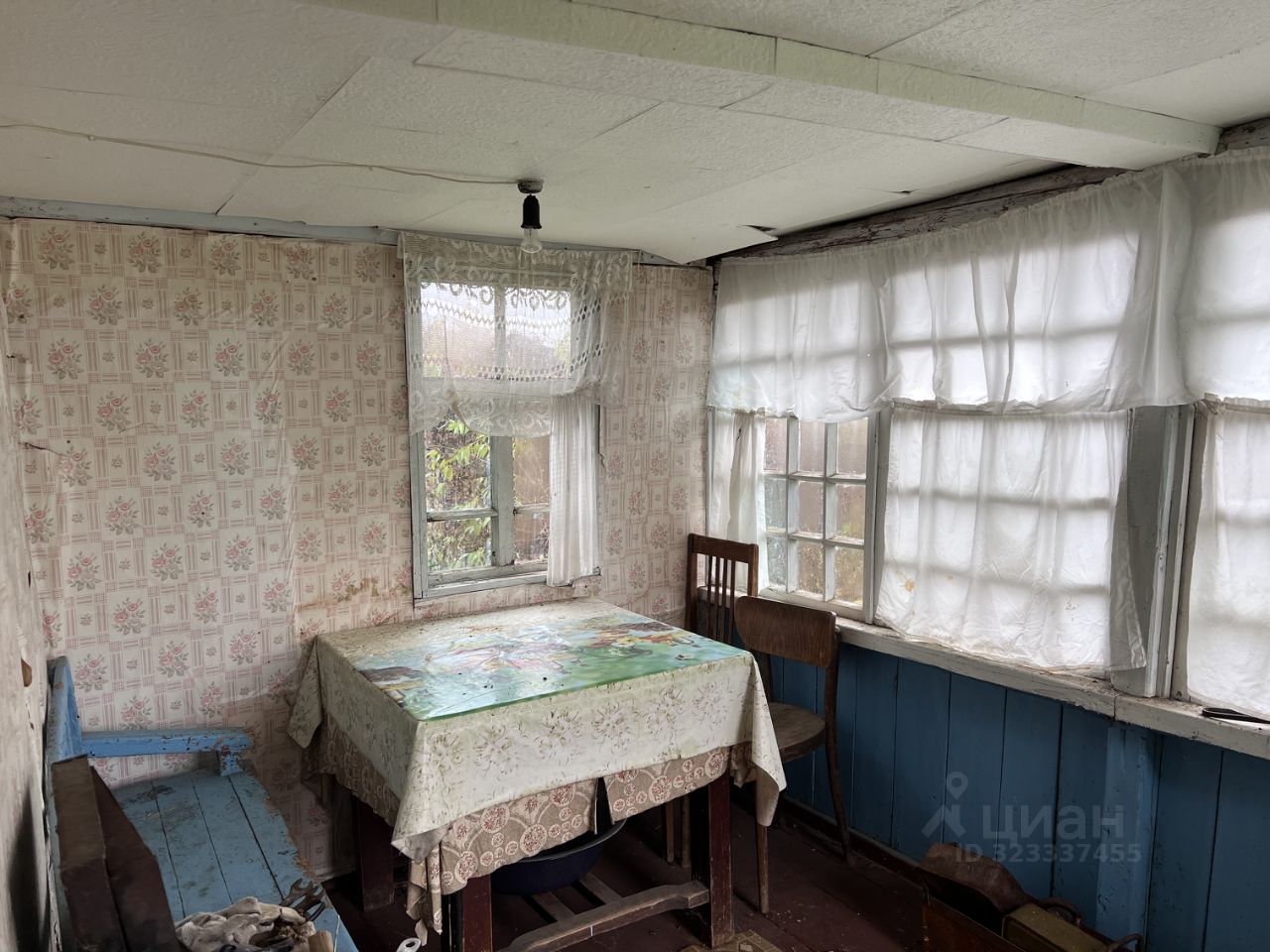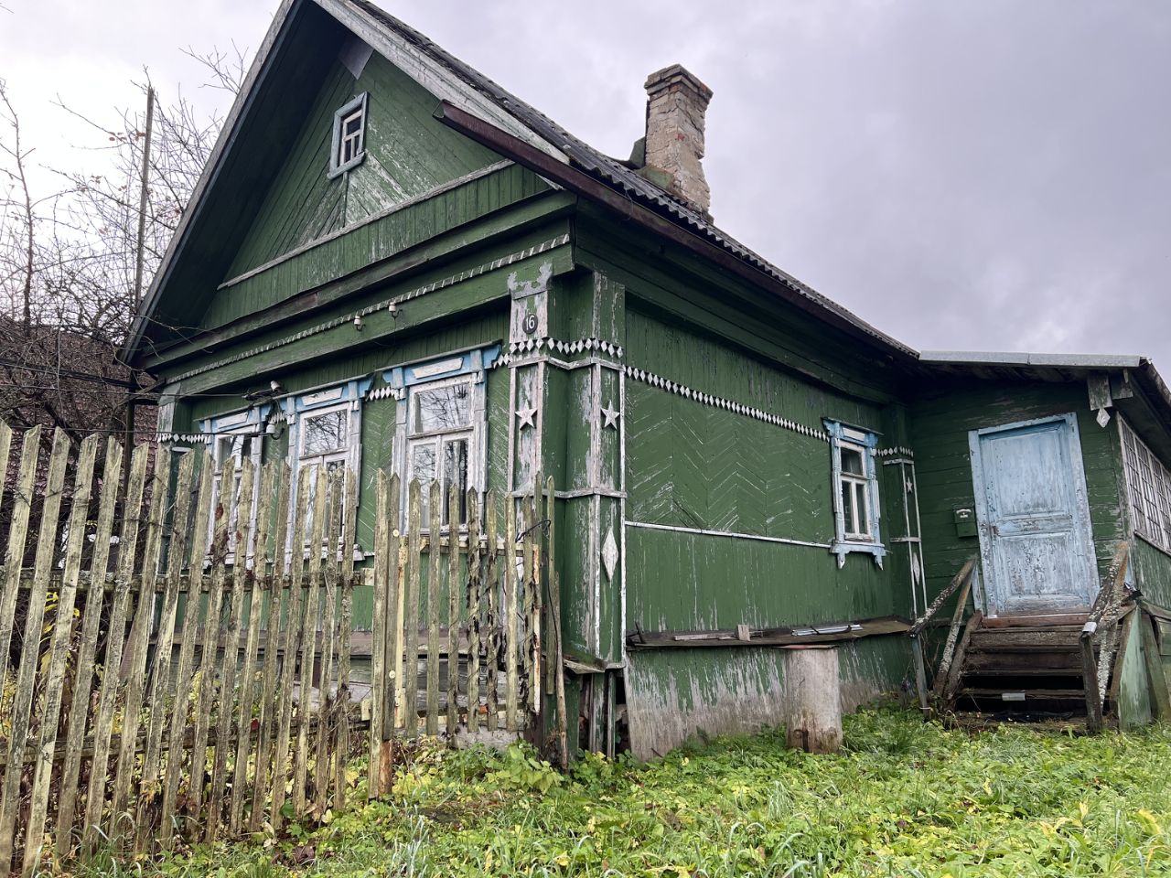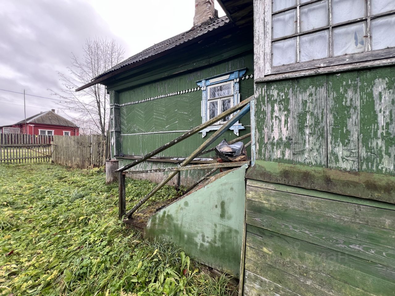Дом из бревна - передняя часть пригодна для жилья. хоз двор надо убирать .