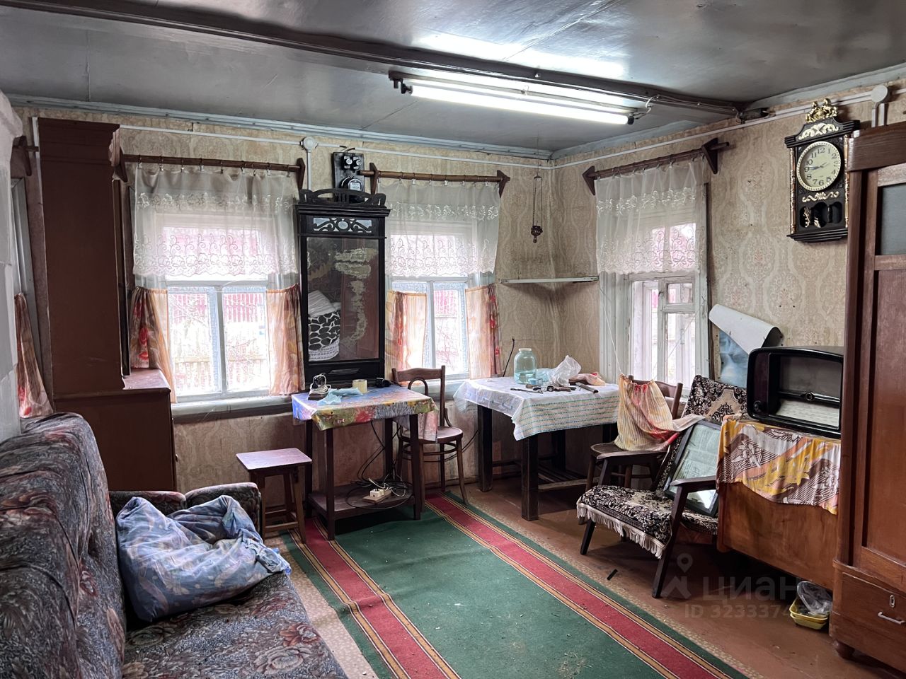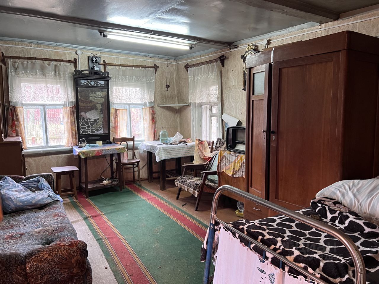 В доме действующая печка , большая комната, кухня и спальня .