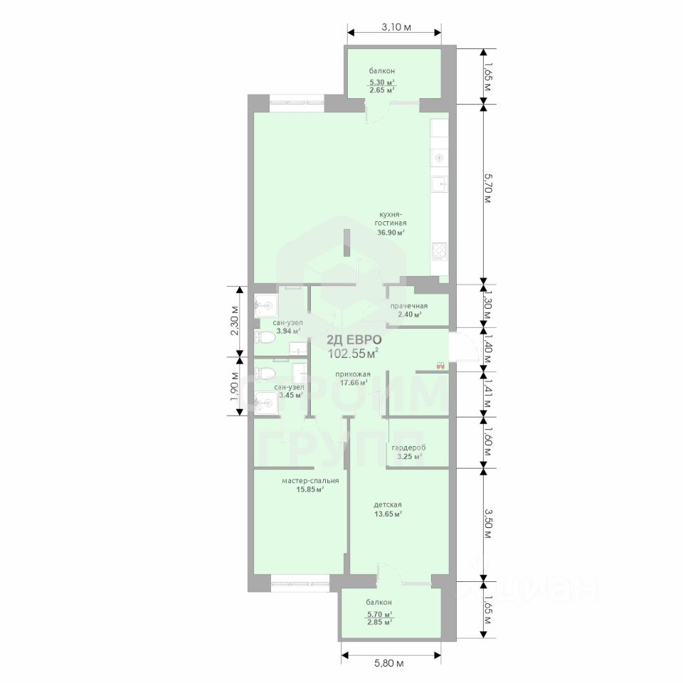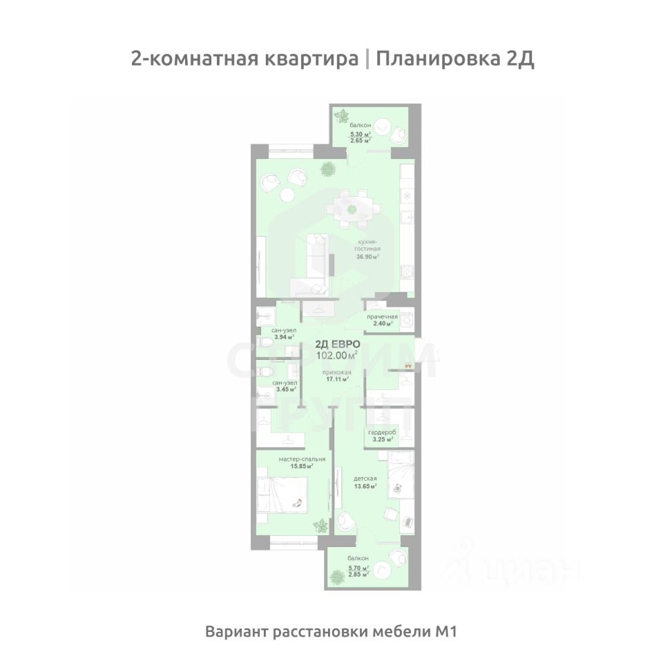 Общая площадь102 м2