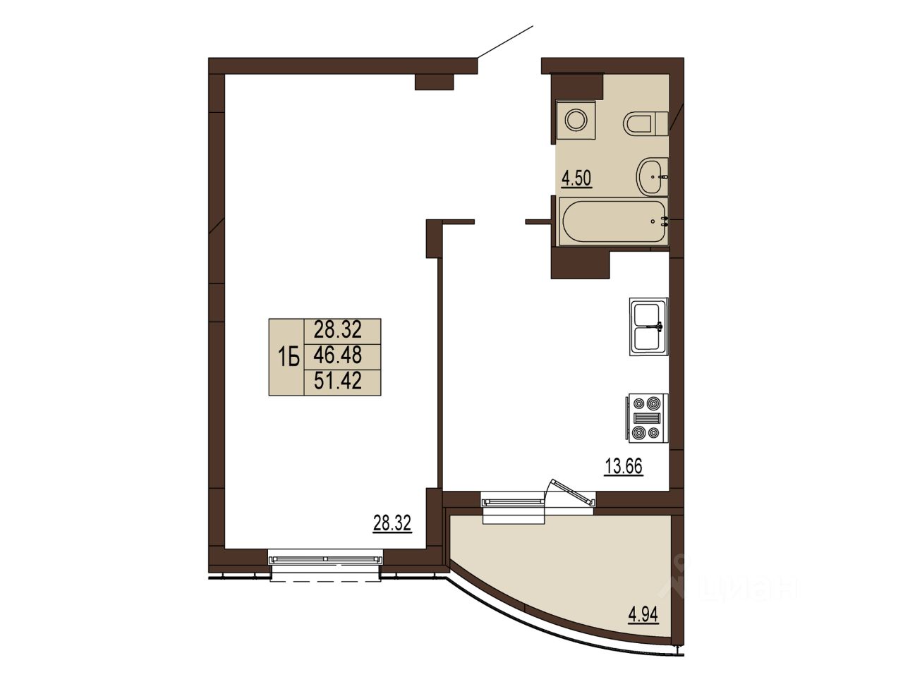 Общая площадь51,42 м2