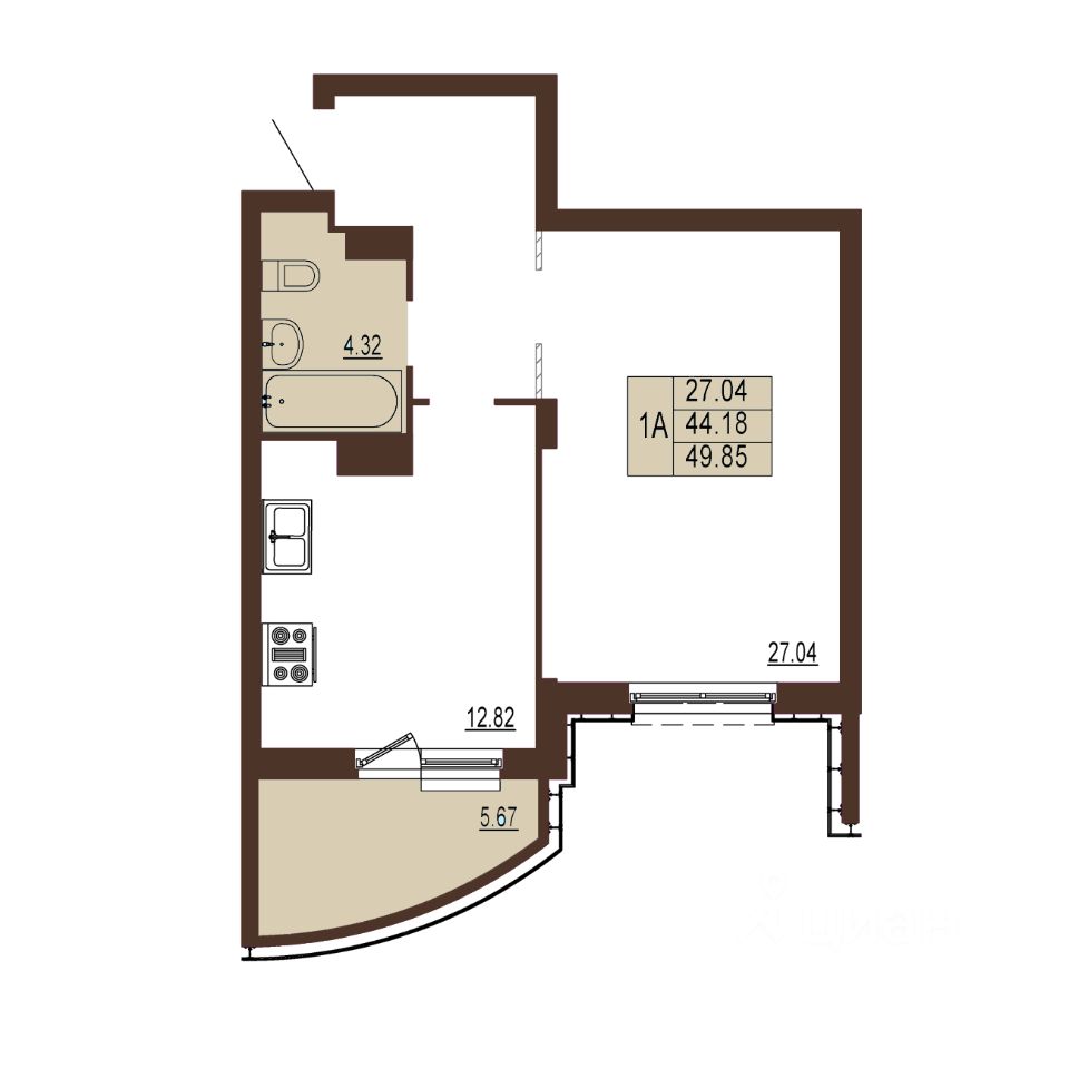 Общая площадь49,85 м2