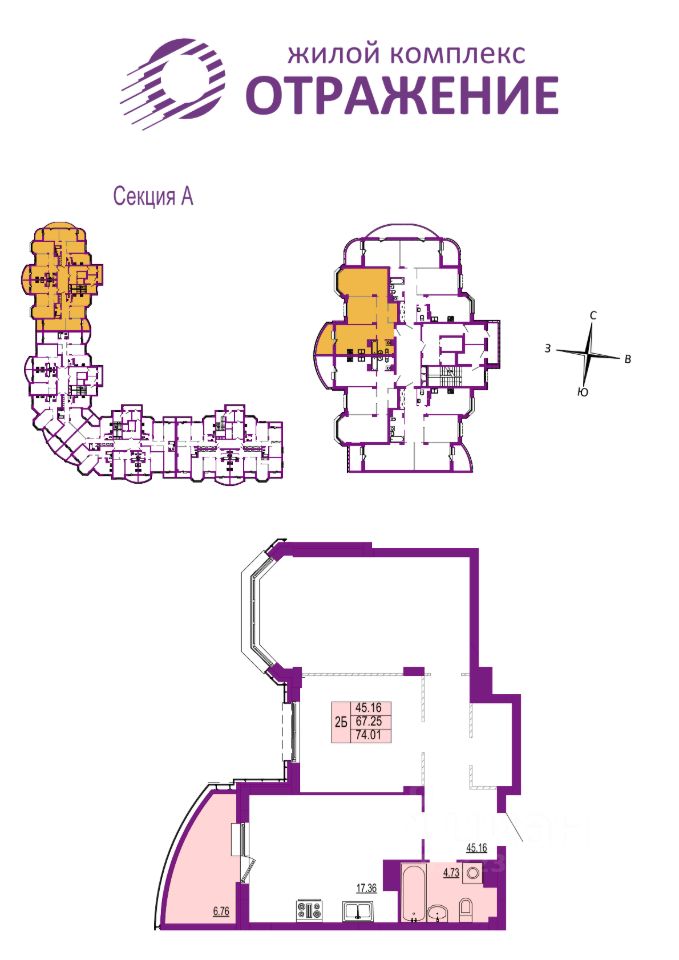 Отделка - Без отделки. - - Жилой комплекс ''Отражение'' - это четыре 17-этажных дома класса комфорт в центральном районе города: 5 минут до исторического центра и столько же для того, чтобы выбраться за город и к живописным местам у реки Содышка. Территория застройки комплекса находится между улицами Горького и Мира. Такое удачное расположение сочетает в себе, казалось бы, несовместимое: беспрепятственный доступ к главным дорожным развязкам города, и при этом комфорт и тишину вдали от шумных трасс.