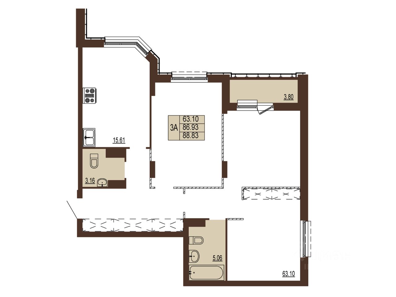 Общая площадь88,83 м2