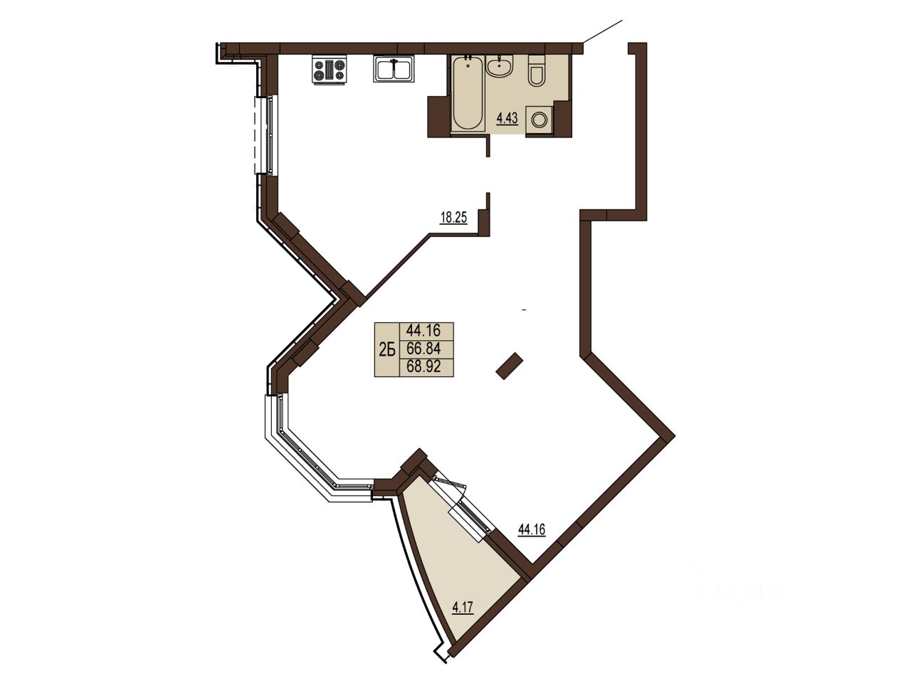Общая площадь68,92 м2