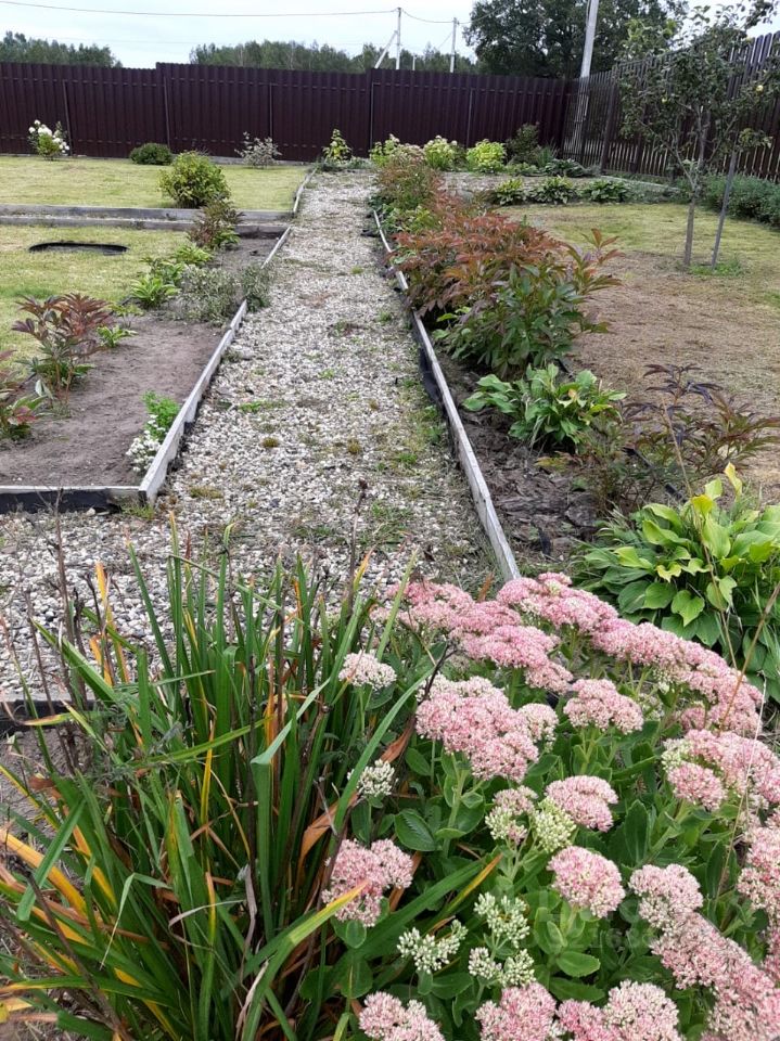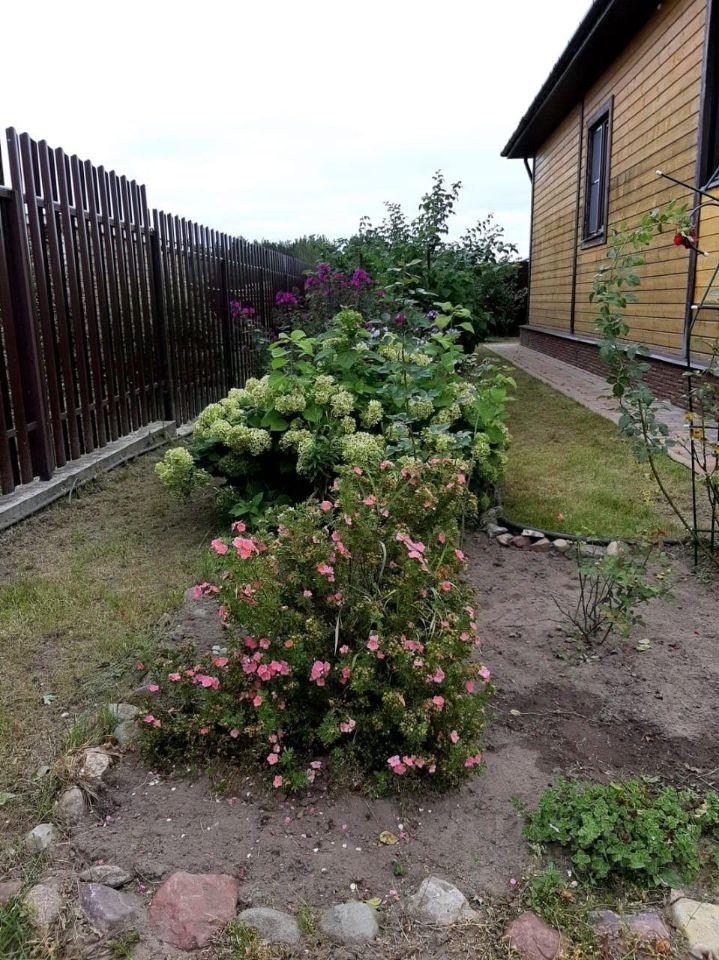 На участке посажены цветы разных сортов: розы, лаванда узколистная, клематисы, пионы, хосты, ирисы, флоксы, хризантемы, лилейники, лилии, безвременники, тюльпаны. Сосна, барбарис обыкновенный и тумберга. Боярышник сливовидный. Чубушник. Ирга. Декоративные кустарники