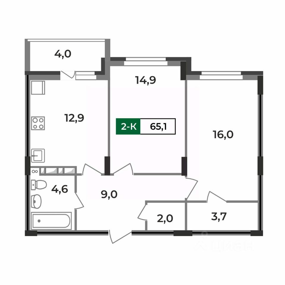 Общая площадь65,1 м2