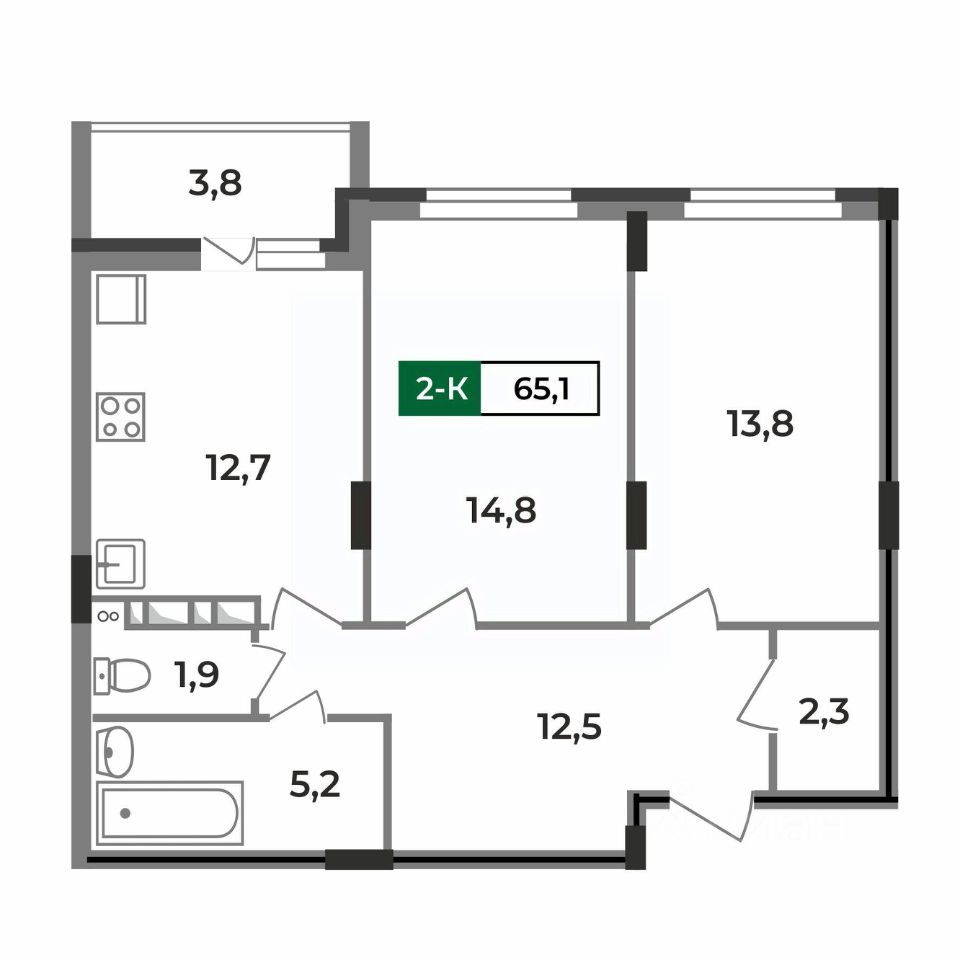 Общая площадь65,1 м2