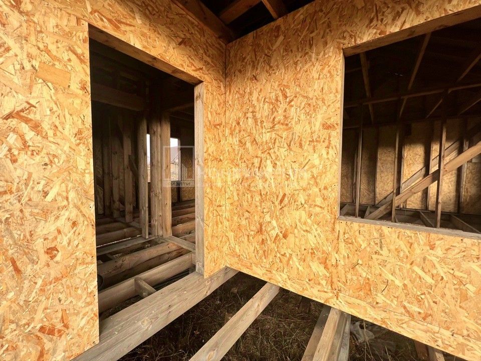 На участке расположена постройка: каркасный дом площадью 64 кв.м, который можно использовать или реконструировать.