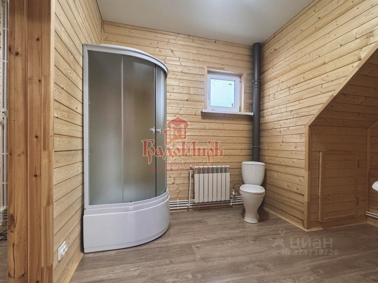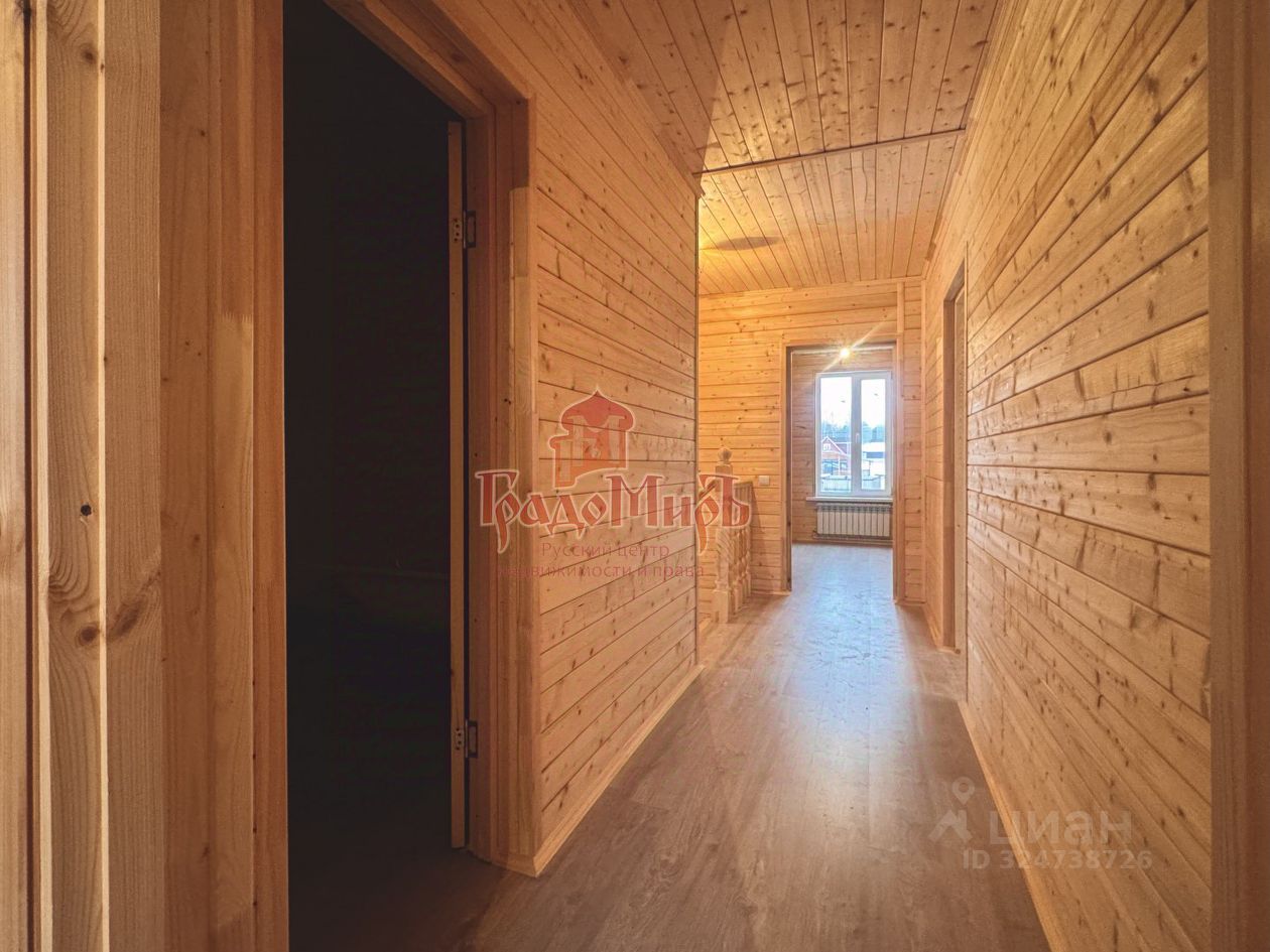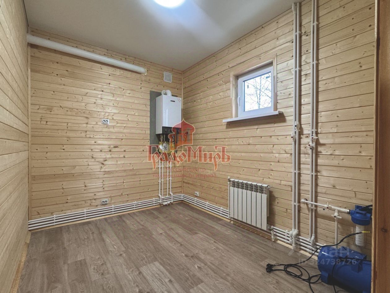 ДОМ 155,9 м2 Кадастровый номер: 33:01:001521:13234 Планировка дома от входа: Прихожая-тамбур, светлая гостиная, кухня с выходом на террасу, спальня, совмещенный с/у, большая котельная, где можно организовать хранение. Второй этаж: три просторных изолированных спален, совмещенный с/у. Конструктив: В шахматном порядке ''по кругу'' проложен утеплитель высокой плотности ''Knauf'' (высокоэффективный минераловатный утеплитель с функцией тепло и шумоизоляции) общей толщиной 150мм. Окна - двухкамерные стеклопакеты (3 стекла). Установлена металлическая дверь. Напольное покрытие в доме - ламинат, на террасе - террасная доска из лиственницы. Межкомнатные двери - массив сосны под окрашивание. В зону кухни подведен газ, трубы коммуникации, электрика.