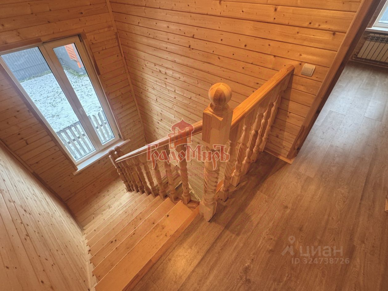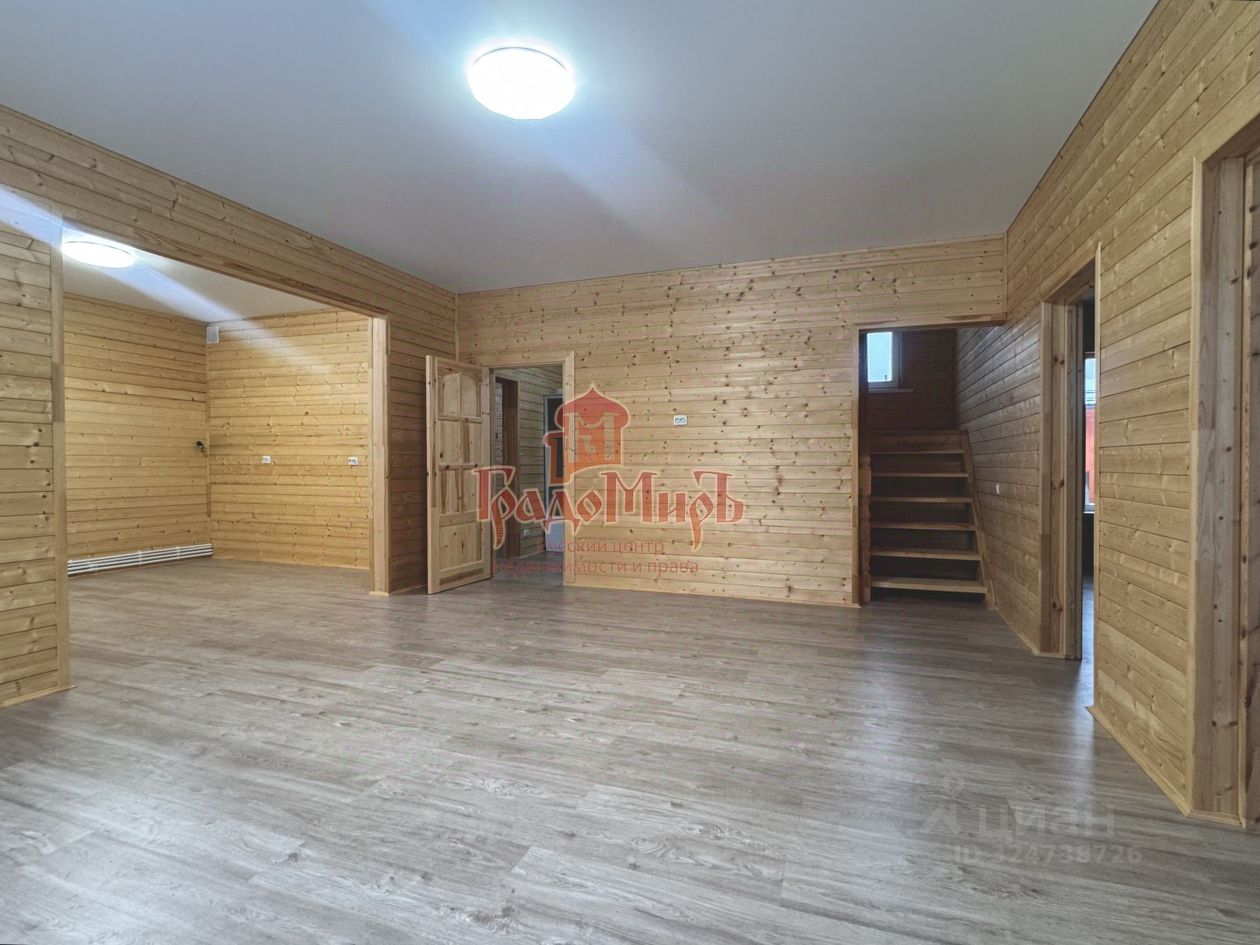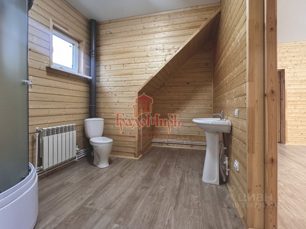 ДОМ 155,9 м2 Кадастровый номер: 33:01:001521:13234 Планировка дома от входа: Прихожая-тамбур, светлая гостиная, кухня с выходом на террасу, спальня, совмещенный с/у, большая котельная, где можно организовать хранение. Второй этаж: три просторных изолированных спален, совмещенный с/у. Конструктив: В шахматном порядке ''по кругу'' проложен утеплитель высокой плотности ''Knauf'' (высокоэффективный минераловатный утеплитель с функцией тепло и шумоизоляции) общей толщиной 150мм. Окна - двухкамерные стеклопакеты (3 стекла). Установлена металлическая дверь. Напольное покрытие в доме - ламинат, на террасе - террасная доска из лиственницы. Межкомнатные двери - массив сосны под окрашивание. В зону кухни подведен газ, трубы коммуникации, электрика.