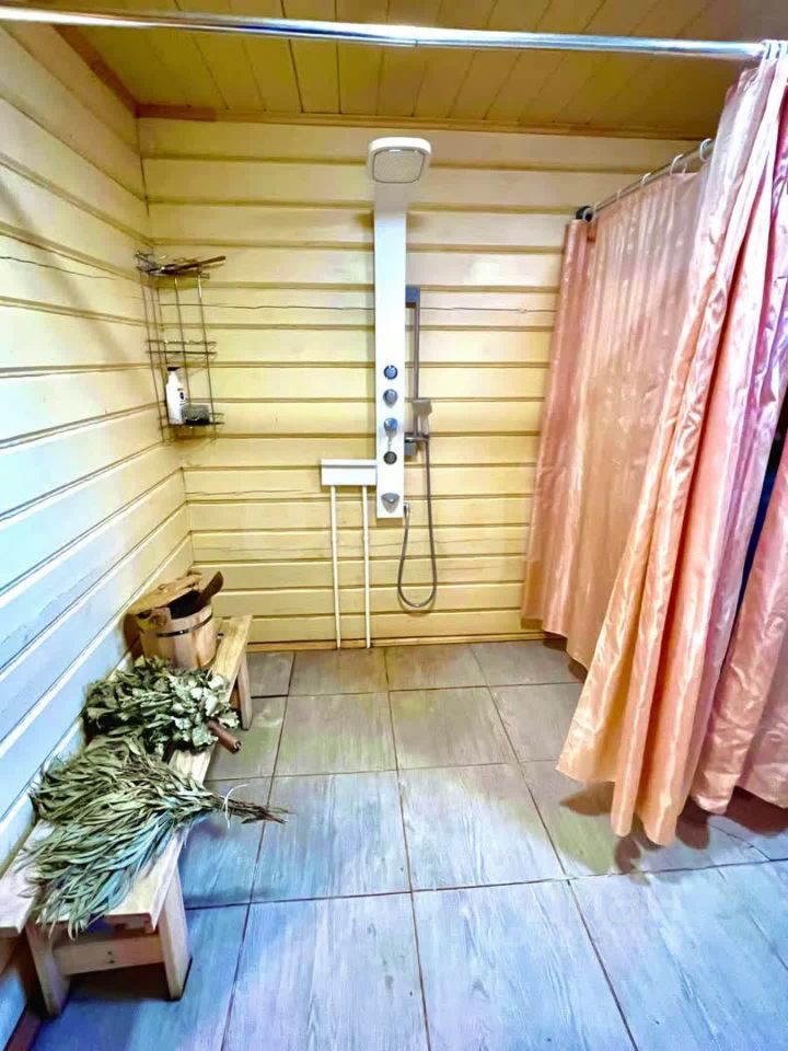 Рядом с домом находится гараж размером 59 м, Отдельная баня из бруса 69 м с террасой 18 кв. м, комнатой отдыха, душевой и парной с печью Feringer, облицованной натуральным камнем. На мансардном этаже бани оборудованы две спальни, что позволяет использовать ее как гостевой домик. Для комфортного отдыха детей на участке есть детская площадка с горкой и домиком на дереве, а также теплица для выращивания овощей и зелени.