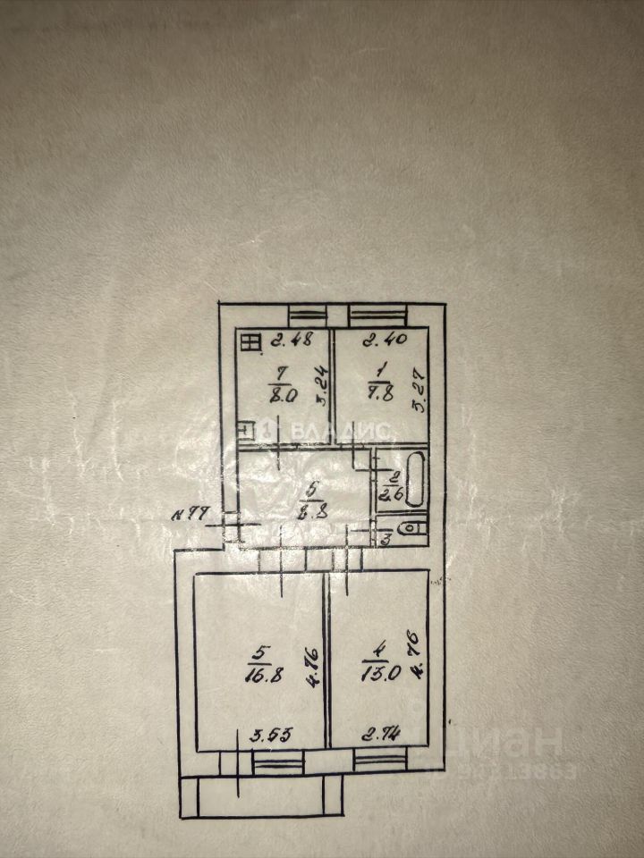 Общая площадь квартиры составляет 58,3 кв. м, из которых 37,6 кв. м — жилая площадь. Высота потолков — 2,6 м, что создаёт ощущение простора и свободы. Окна выходят на улицу и во двор, обеспечивая достаточное количество естественного света.