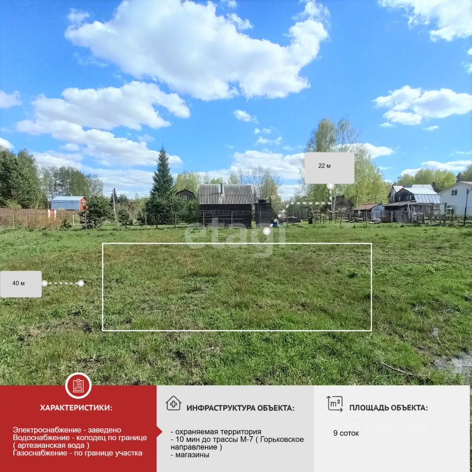 Предлагается ЗЕМЕЛЬНЫЙ УЧАСТОК 9 соток в СНТ ''Рябина'', Владимирская область.
