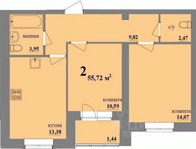 Общая площадь55,72 м2