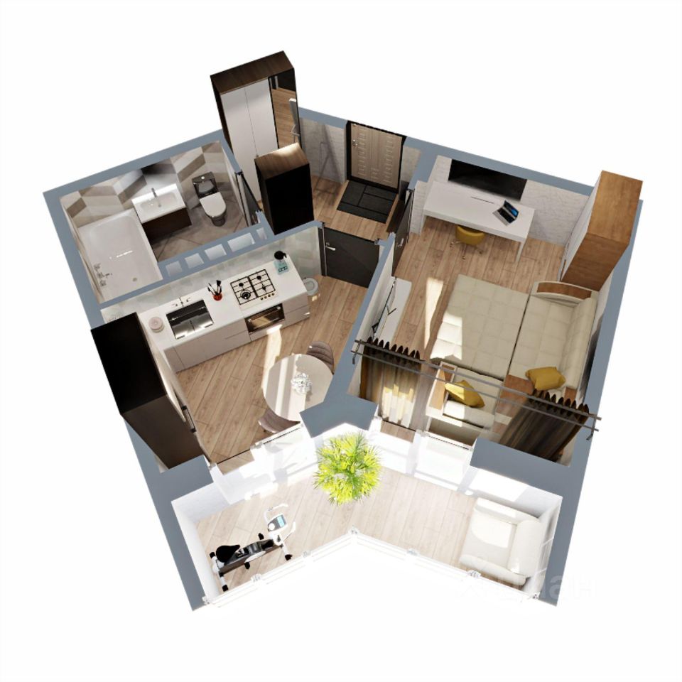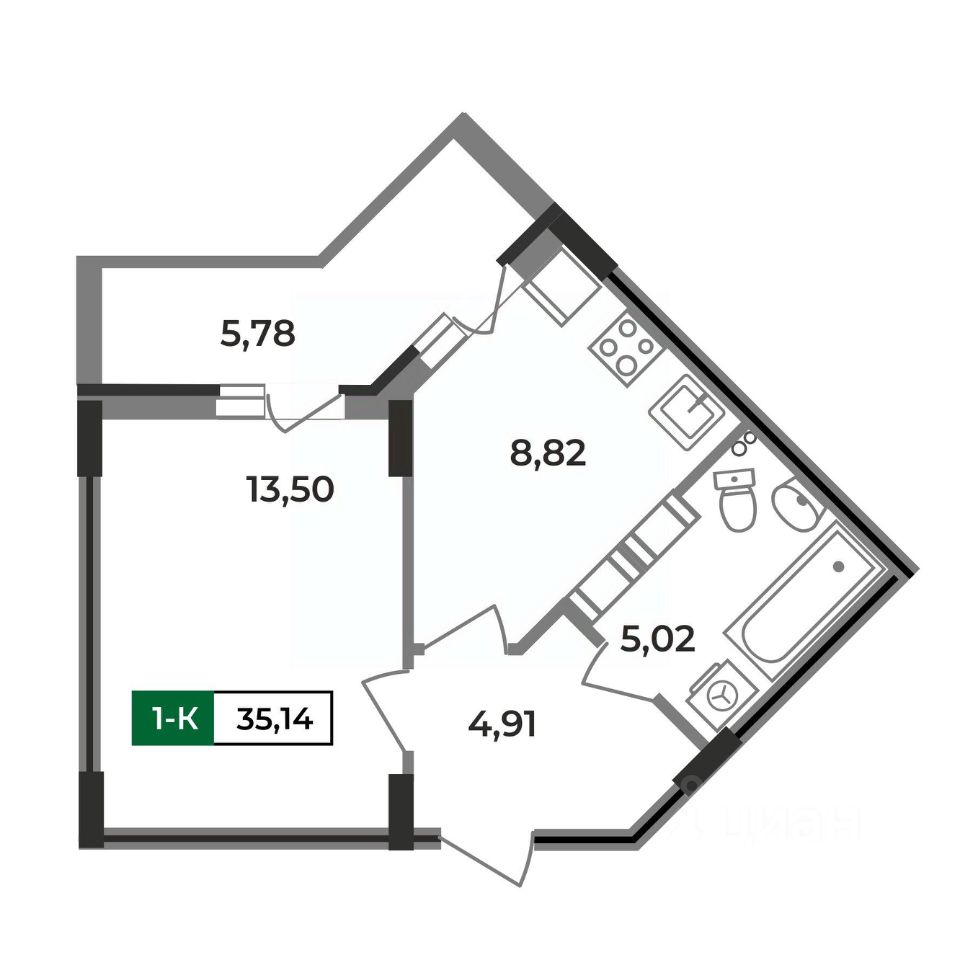 Привлекательная 1-комн. квартира 35,14 кв.м. Одной из её ключевых особенностей является необычная форма кухни, которая придает интерьеру характер и стиль. А двойной выход на лоджию - из уютной спальни и функциональной кухни создаст идеальное место для утреннего кофе под открытым небом или для расслабления после рабочего дня.Эта квартира идеально подходит как для молодых профессионалов, так и для всех, кто ищет уютное и стильное жилье, которое подчеркивает вашу индивидуальность.