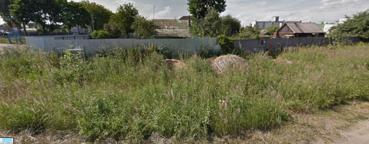 Участок в городе, со всеми коммуникациями. Дом сгорел, на участке есть мусор и хозблок.