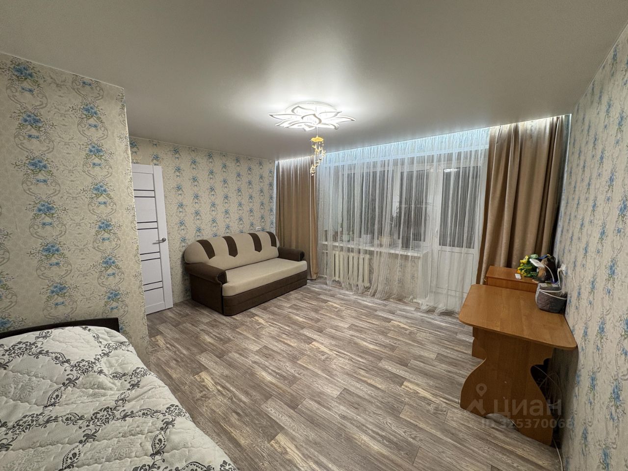 Сан/узел совместный, на лоджию выход из гостиной, комната с нишей под спальную зону.
