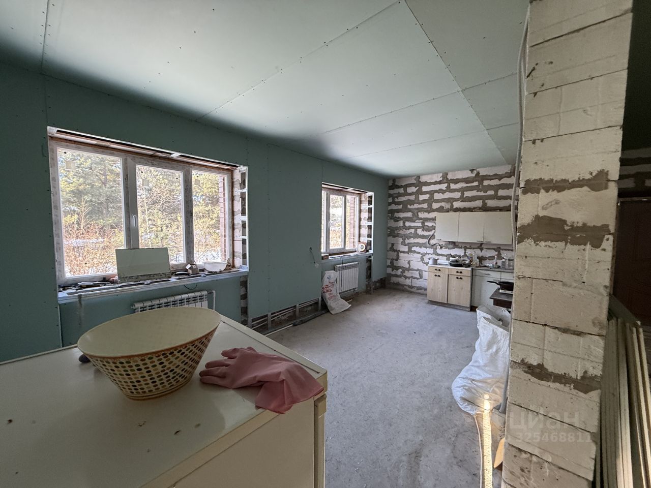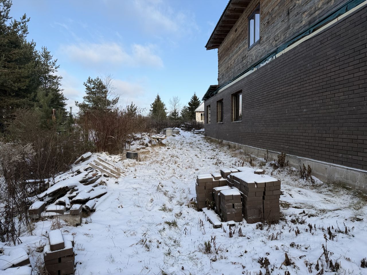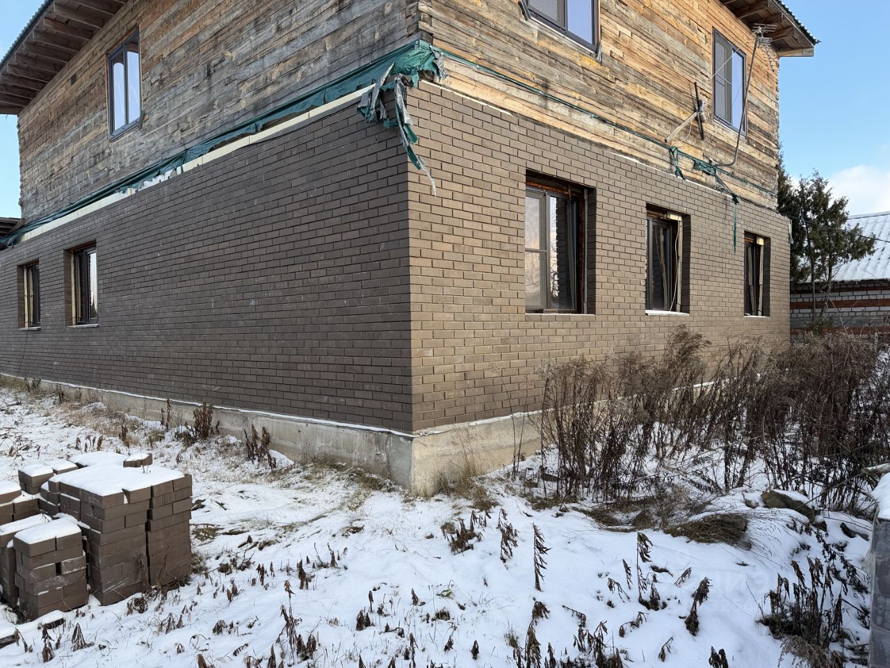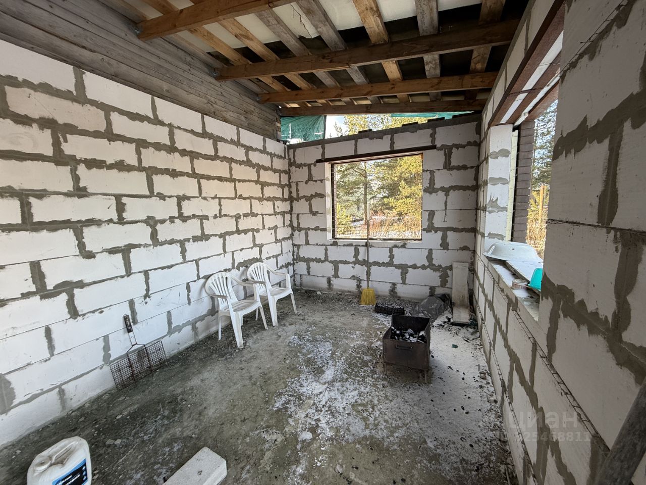 ЖИЛОЙ ДОМ: Дом двухэтажный (1-й этаж - блочный, 2-й этаж - бревенчатый), на отличном ленточном фундаменте, утеплен, площадью 225 кв.м.+ терраса. Дом с частичной отделкой. Снаружи дом почти полностью отделан декоративным кирпичом. На первом этаже - терраса блочная без окон (надо вставлять), коридор - 23 кв.м., кухня - 21.6 кв.м., зал - 33.8 кв.м. и две комнаты 16.8 кв.м. +13.6 кв.м. На втором этаже (площадь второго этажа 116,1 кв.м.) - холл, помещение для сан.узла и три раздельные комнаты. Высота потолков 2.38 метров.