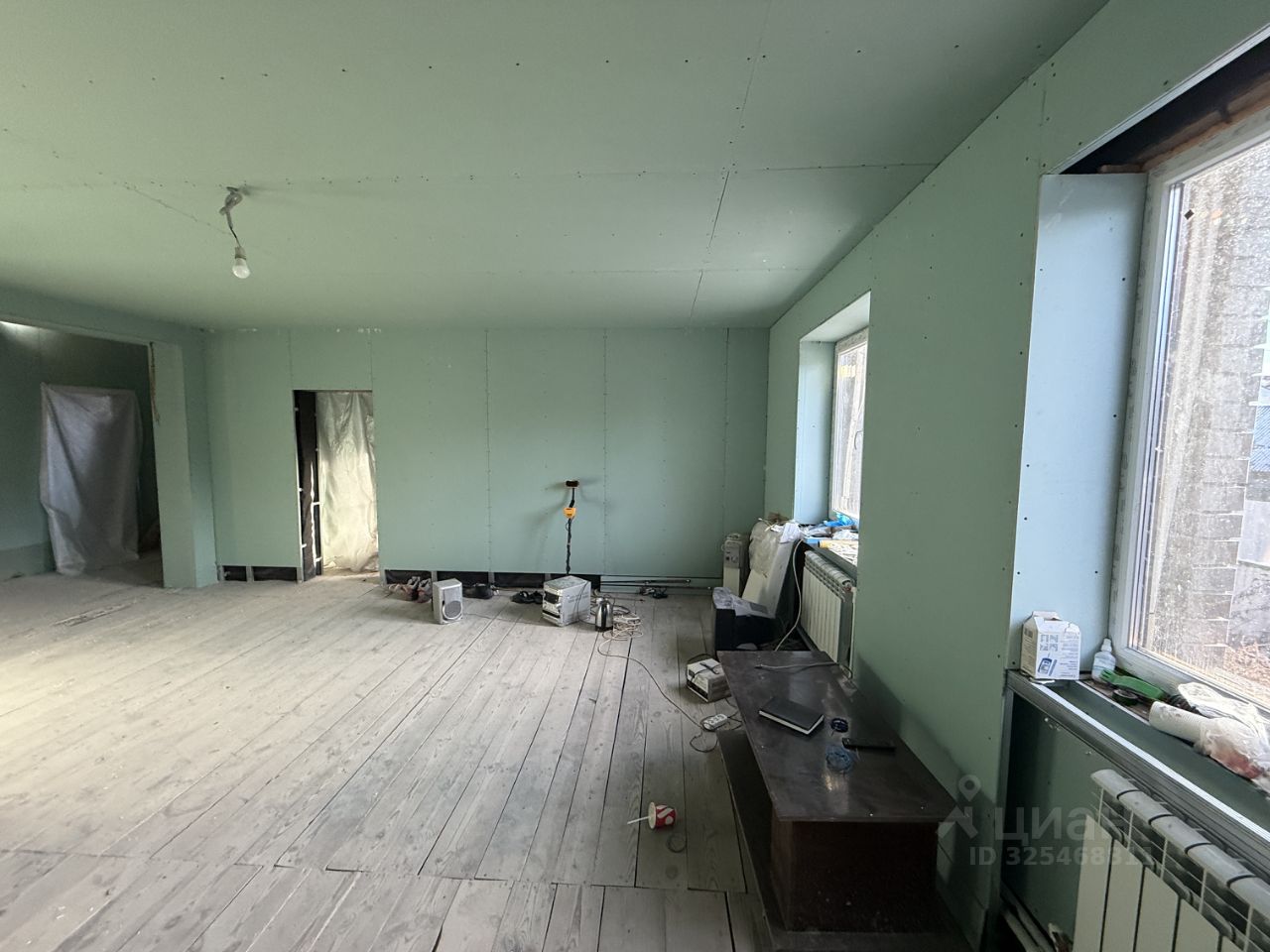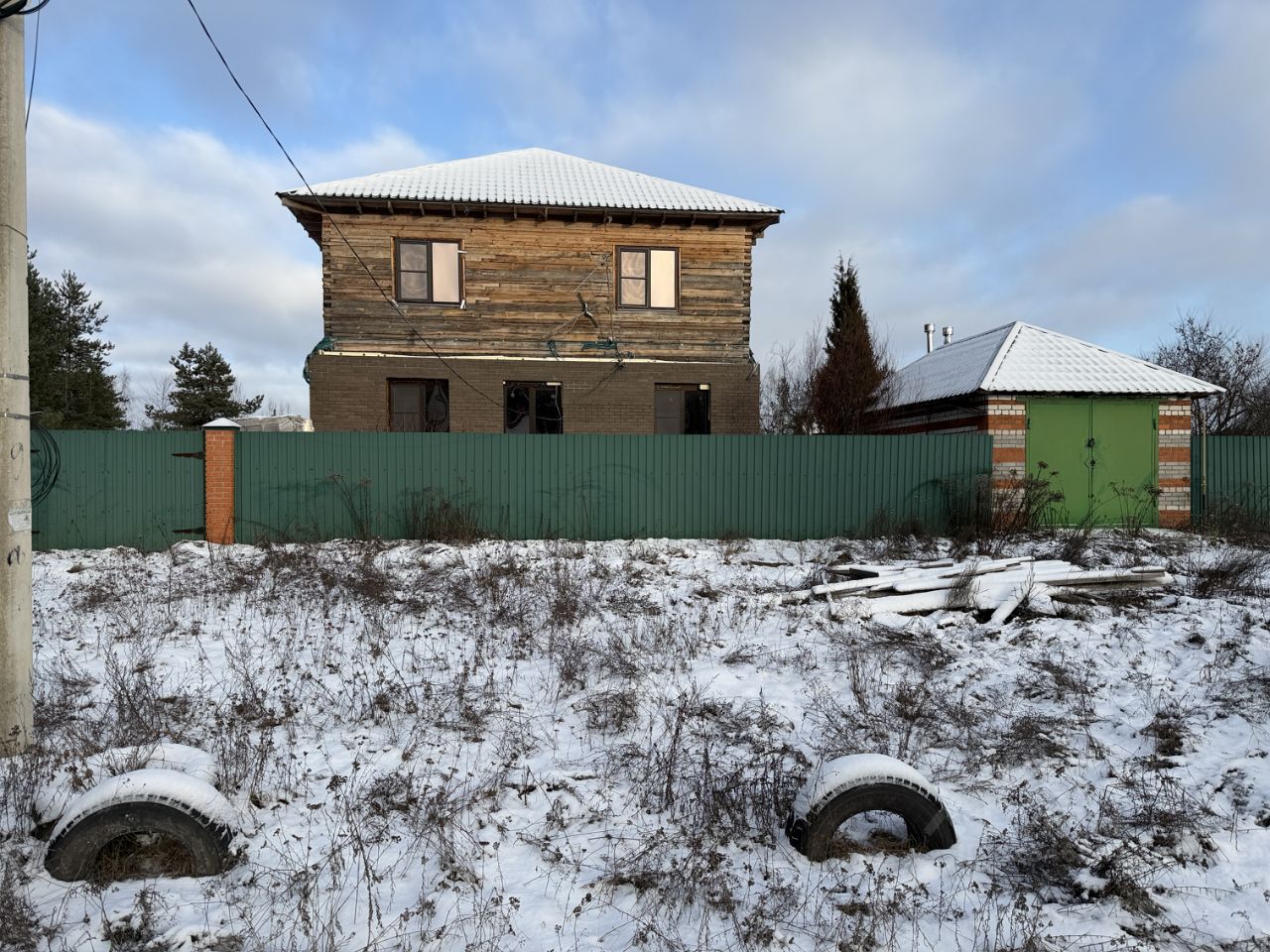 ЖИЛОЙ ДОМ: Дом двухэтажный (1-й этаж - блочный, 2-й этаж - бревенчатый), на отличном ленточном фундаменте, утеплен, площадью 225 кв.м.+ терраса. Дом с частичной отделкой. Снаружи дом почти полностью отделан декоративным кирпичом. На первом этаже - терраса блочная без окон (надо вставлять), коридор - 23 кв.м., кухня - 21.6 кв.м., зал - 33.8 кв.м. и две комнаты 16.8 кв.м. +13.6 кв.м. На втором этаже (площадь второго этажа 116,1 кв.м.) - холл, помещение для сан.узла и три раздельные комнаты. Высота потолков 2.38 метров. Вставлены окна ПВХ, установлена входная дверь. По всему дому установлены радиаторы, коммуникации в дом проведены. Бойлерная со всем оборудованием пристроена к гаражу. Дом 2019 года постройки. В доме уже сейчас можно проживать круглый год (отопление газовое, электричество разведено, вода в дом шлангом заведена) и доделывать внутреннюю отделку. Кадастровый номер: 33:01:001425:294.