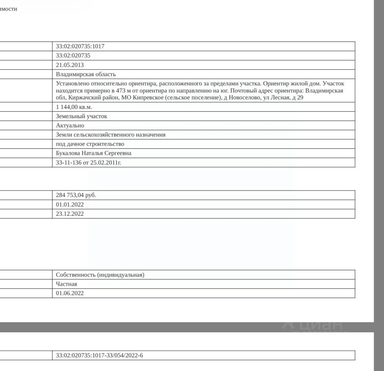 кадастровый номер земельного участка