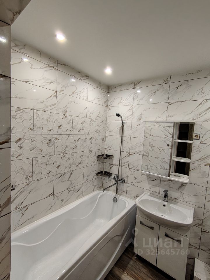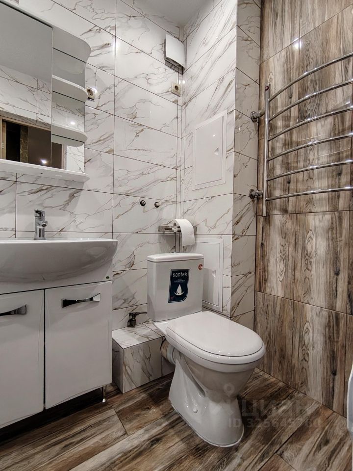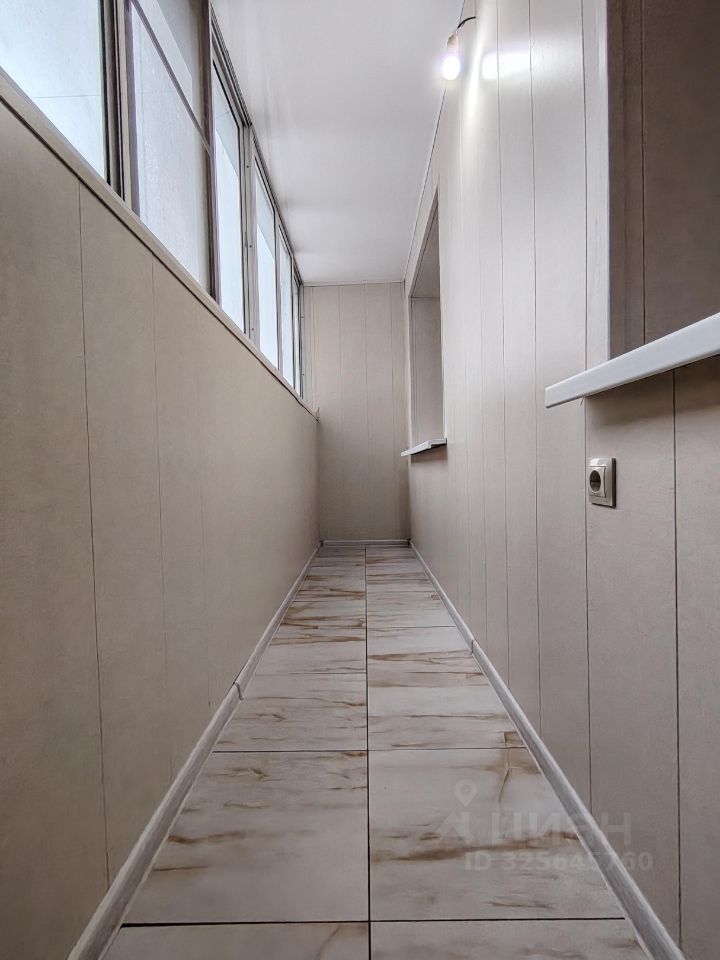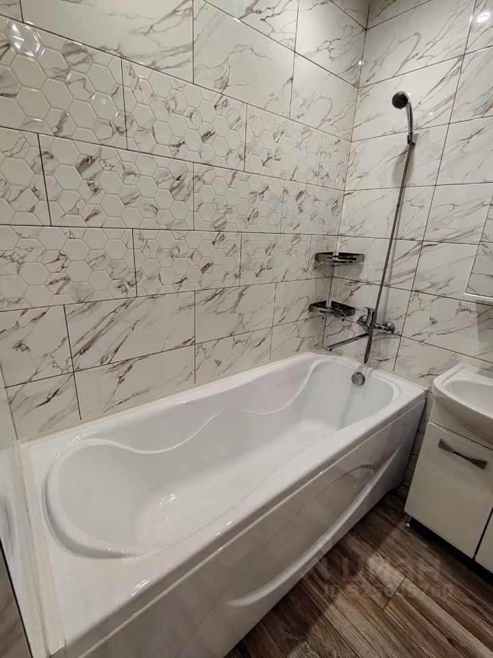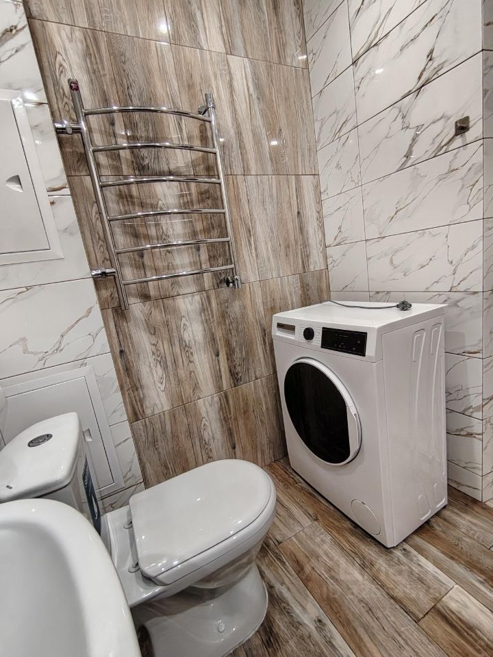 Санузел совмещенный. В ванной комнате установлена стиральная машина. Лоджия большая и застеклена.