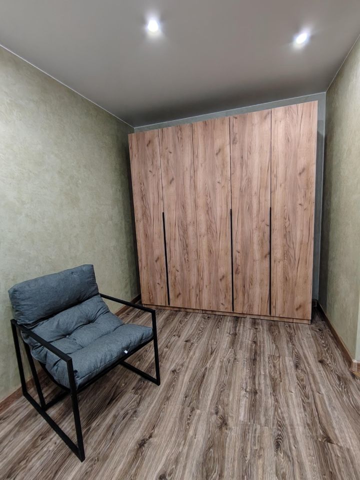 В квартире выполнен дизайнерский ремонт. Просторная кухня оборудована всей необходимой мебелью и бытовой техникой, включая холодильник, плиту ''Аристон '' и микроволновую печь. В комнате установлен большой шкаф, кресло и удобная кровать с отопедическим матрасом (всё новое)