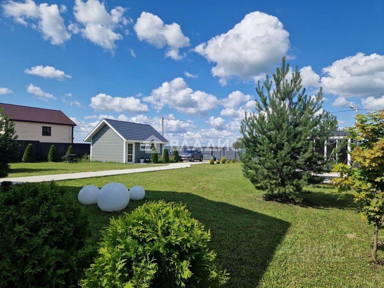 Благоустройство: Ровный участок с идеальным газоном, ландшафтным освещением и взрослыми растениями (более 15 туй высотой 2.2м+, ели, эксклюзивная ель ''ниваки'').Инфраструктура для отдыха: Открытая терраса-беседка (35 м²) с уличной кухней для летних вечеров.Для авто: Капитальный утепленный гараж (35 м²) с автоматическими воротами + бетонная парковка на 5 машиномест.Безопасность: Ограждение по периметру, откатные электроворота, система видеонаблюдения.