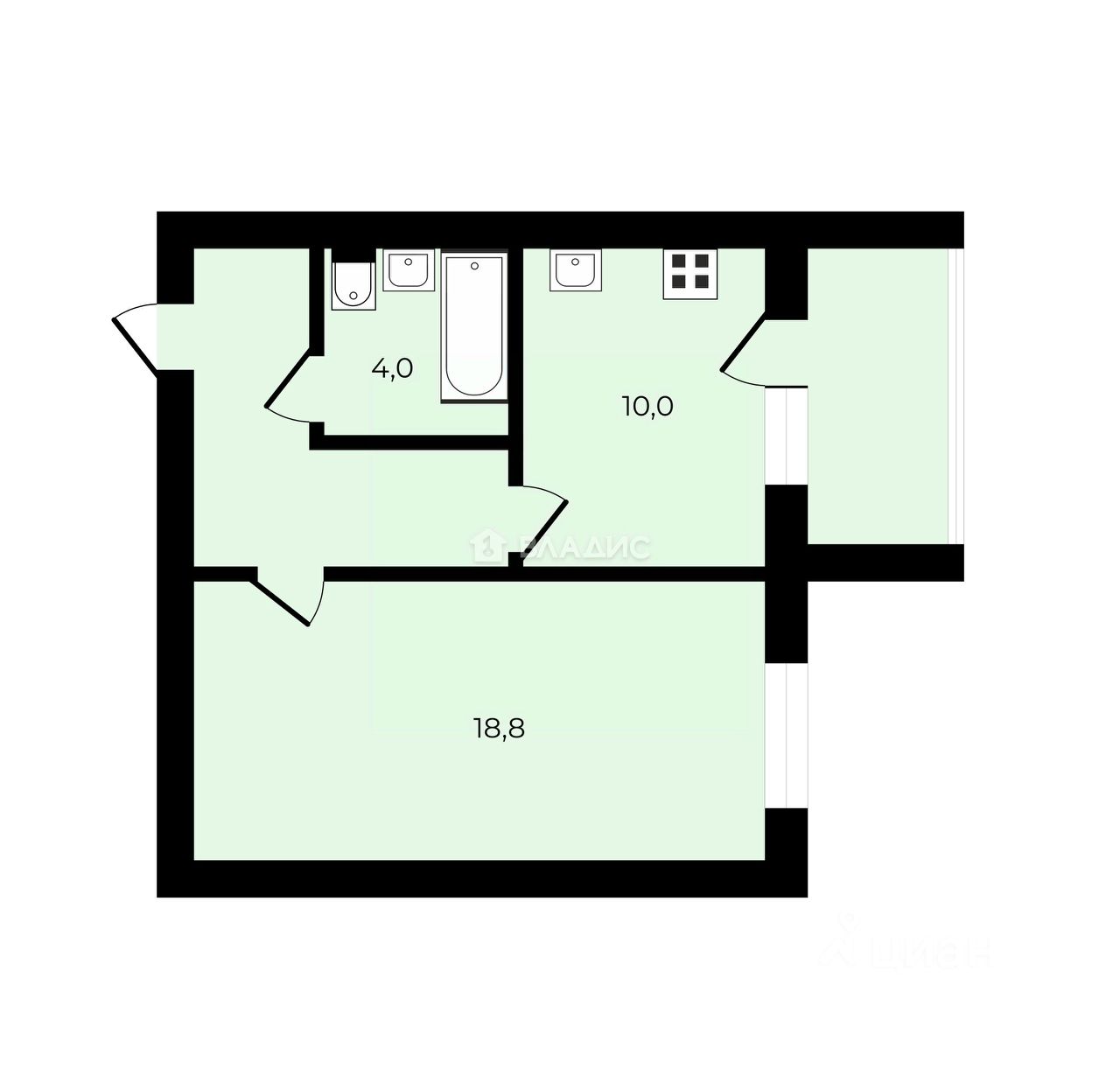 Общая площадь квартиры составляет 39.1 м² (БЕЗ УЧЕТА ХОЛОДНЫХ ПОМЕЩЕНИЙ!)