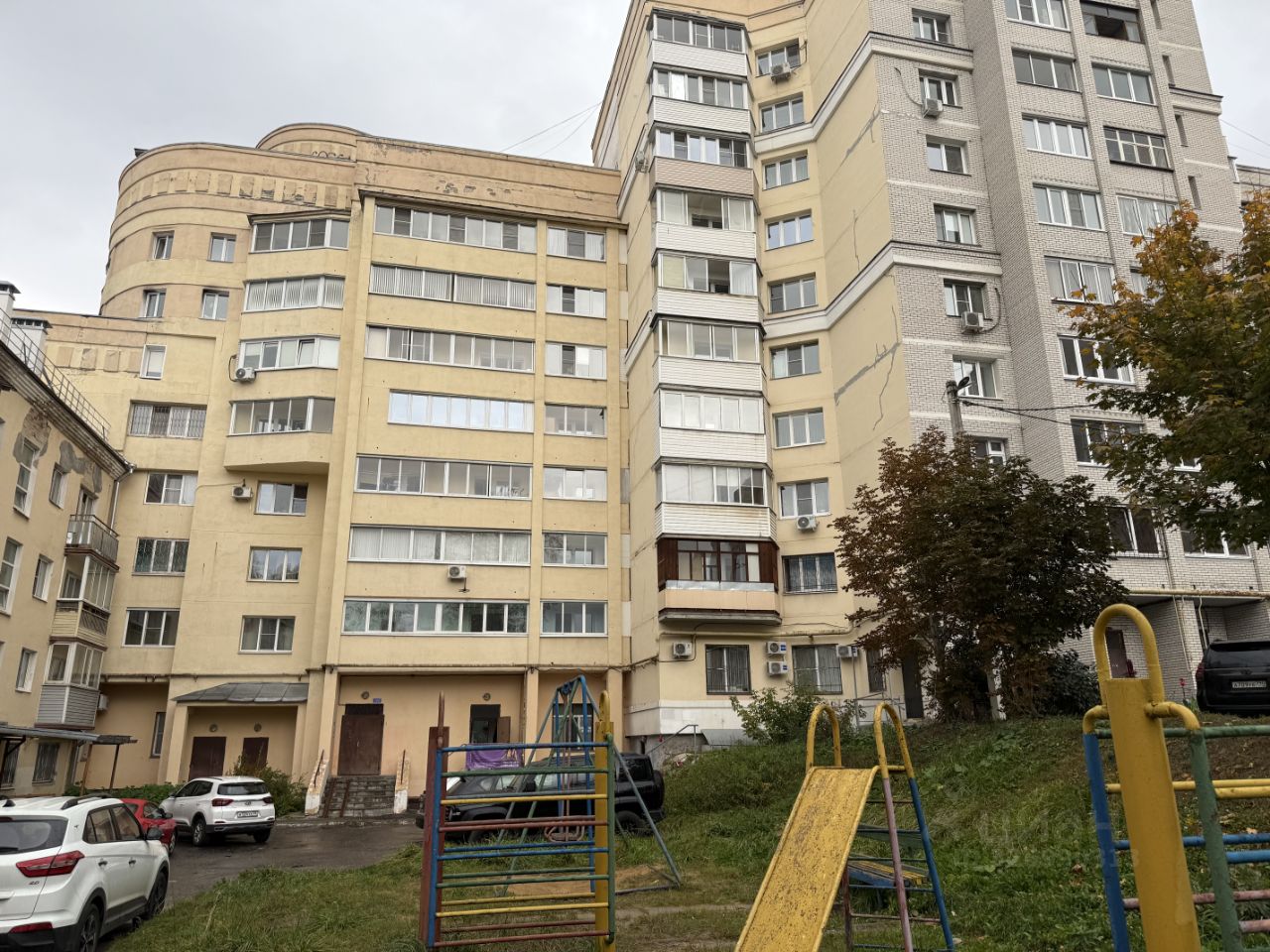 Дом находится в хорошем состоянии, оборудован пассажирским лифтом и наземной парковкой, где всегда можно найти место для автомобиля. Вокруг дома ухоженная территория с зелеными насаждениями, что создает приятную атмосферу для прогулок.
