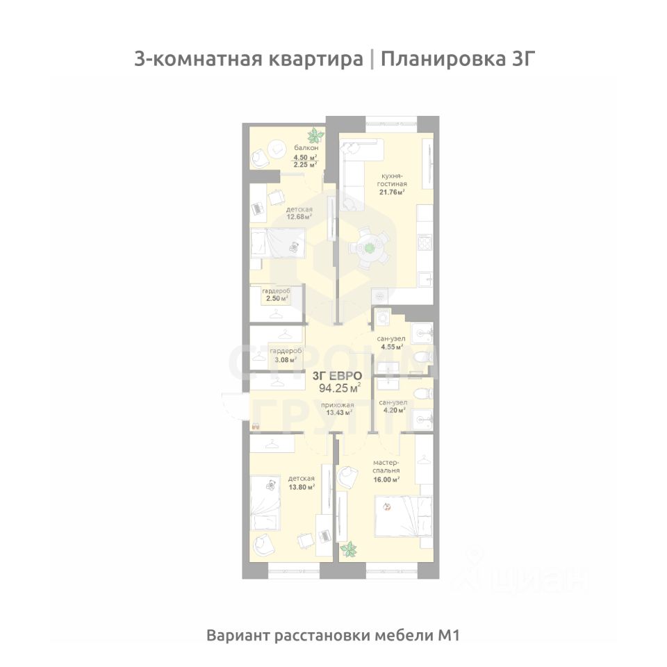 Общая площадь94,25 м2