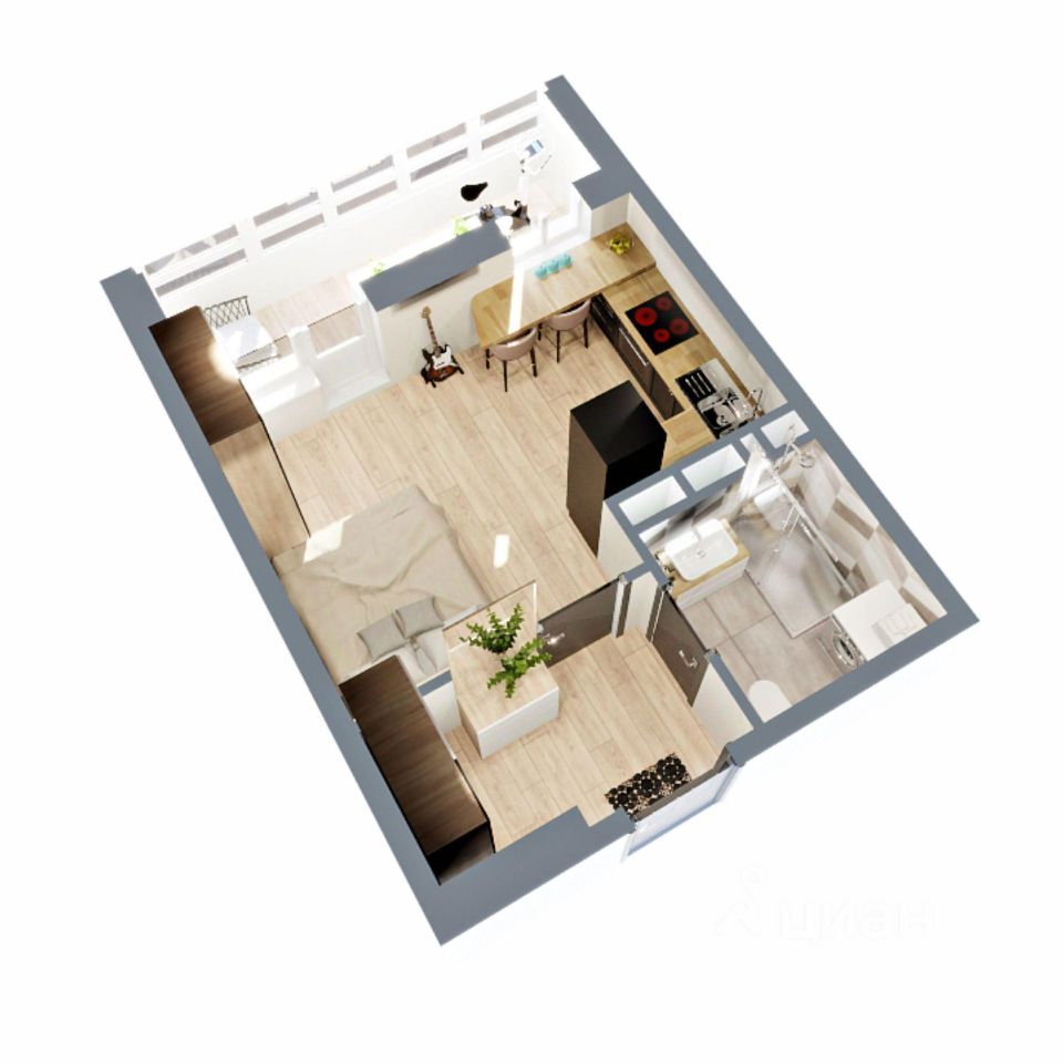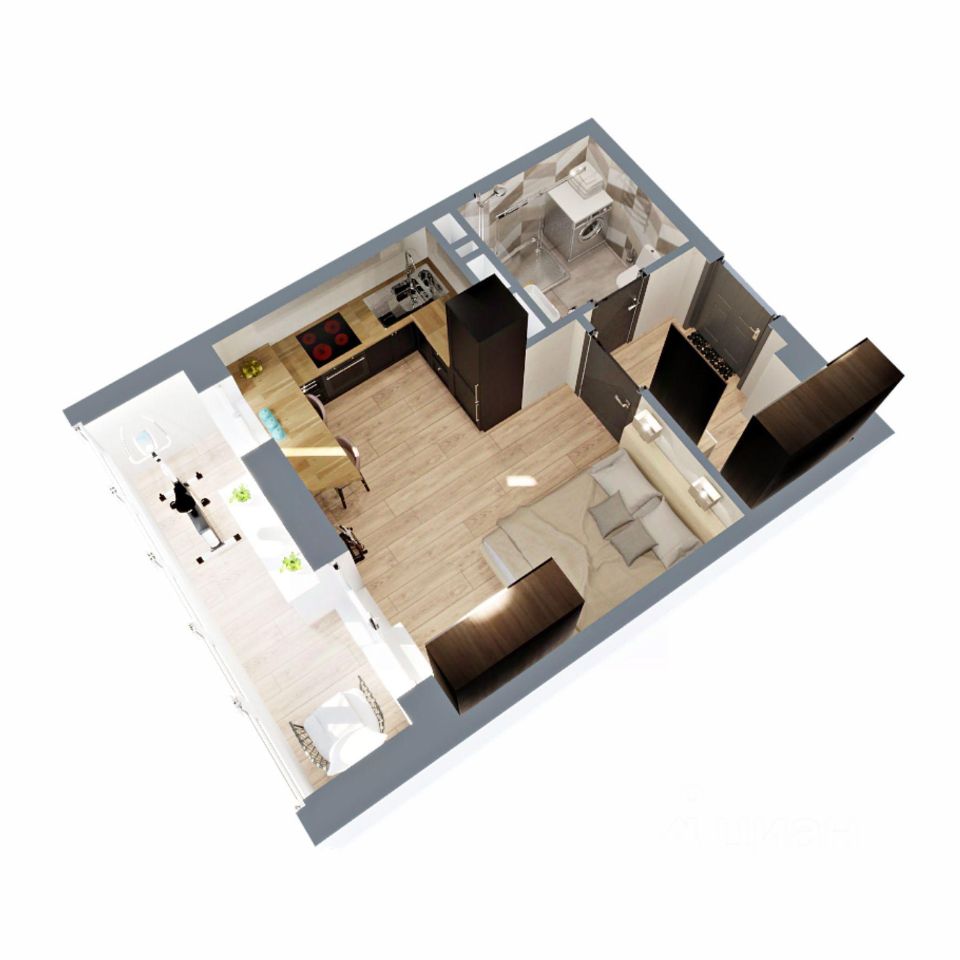 Правильной геометрии пространство позволит удобно зoнирoвaть нa жилую и обеденную зоны.Просторный санузел, удобная прихожая с нишей под шкаф-купе.