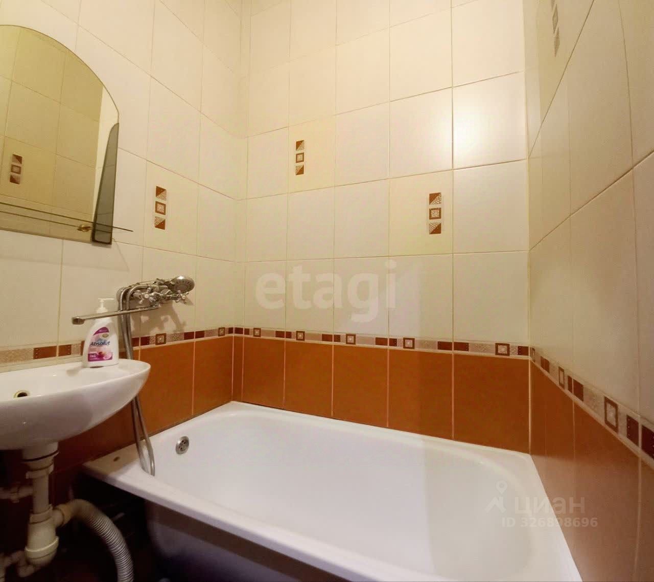 Санузел совмещен, облицован кафельной плиткой.