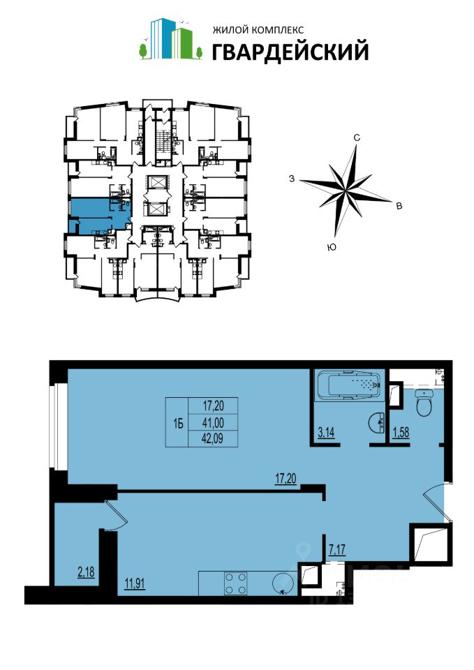 Отопление и горячее водоснабжение: В доме своя крышная газовая котельная, а это значит, что коммунальные платежи значительно ниже, чем в домах с центральным отоплением. Включение\отключение отопления определяется автоматикой или решением жителей. Инфраструктура: ЖК ''Гвардейский'' это 17 жилых домов разной этажности, расположенных в мкр. Юрьевец. На территории комплекса открыт детский сад No11 с бассейном, спортивным и музыкальным залами. В 2024 году сдается второй такой же детский садик.